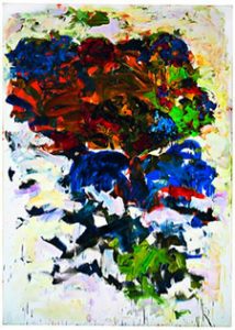 Cheim & Read has brought together works, dating from 1985-1992, that represent Joan Mitchell‘s exploration of painting in the last decade of her life. While the artist’s late work still evinces a distinct confidence of gesture and mark-making, it is further characterized by an increased sense of freedom. Often presented in diptych format, Mitchell’s expansive late canvases remain evocative of the landscape, but also provide room to explore a more liberated mark. Brushstrokes are energetic and colors vivid. Punctuated by airy, unpainted areas of canvas, the paintings express a sensation of urgency and immediacy, as if in rejection, denial and resistance to her failing health. Through her late work, she strived for immortality, for a merging with the timelessness and formlessness of nature.