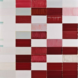 Roberto Caracciolo‘s square canvases take the modernist grid as their starting point. Like Mondrian before him the artist suggests the grid as a framework, something to be transmuted by the artist. His painterly marks do not simply float against negative space but become part of a dynamic structure of color. The artist has created a matrix for reflection and examination, where paint is caught in motion across carefully constructed space. The paintings function as a poem set in the key of one color.