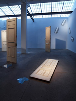 An installation of doors and figurative transparent sculptures form the nucleus of multi-media artist Yoko Ono‘s second solo exhibition at Galerie Lelong, UNCURSED. Ono says, “When we were children, we learnt at our elementary school how the warrior, Shikanosuke Yamanaka, vowed to endure seven misfortunes and eight sufferings, thereby giving all the negative things to him that would have been given to the people of his city… Much later, I wondered if it would not be better to ask for seven good fortunes and eight treasures…which I promptly did. In my recent exhibition THE ROAD OF HOPE in Hiroshima… I offered blessings to the people of Hiroshima and prayed that they would be given seven good fortunes and eight treasures.” Ono now envisions these same blessings for New York as a reminder of our global connectedness and the universality of human experience to “uncurse” ourselves and move on.