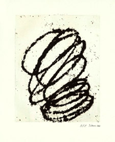 In November 2010, Richard Serra began his most recent collaboration with Gemini G.E.L. on two series of prints – Bight and Ballast. Bight and Ballast continue the artist’s two-dimensional examination of mass and weight in a small scale, with highly textured and saturated surfaces that have come to define Richard Serra’s print work. Serra has been making prints at Gemini G.E.L. in Los Angeles for almost forty years. Known for his monumental steel sculptures, Serra has increasingly worked in a larger scale as a printmaker, yet after completing some of his largest prints ever at Gemini (the 2008-2010 Weights and Levels), the artist chose to revisit printmaking on a relatively small-scale.