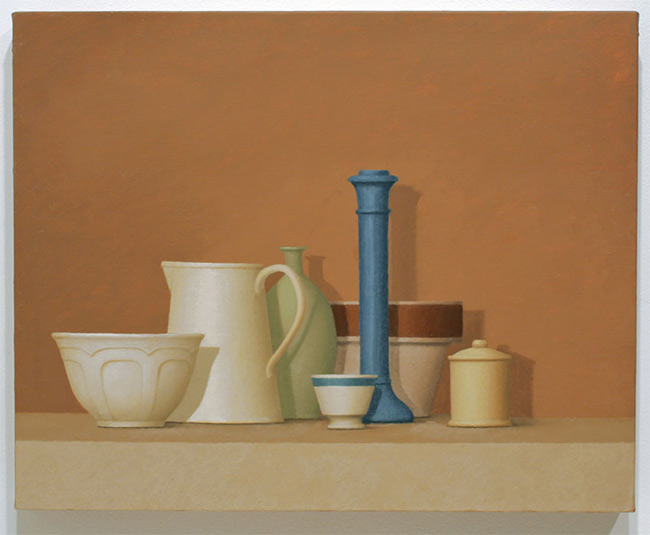 William Bailey’s work is instantly recognizable, particularly his still-life paintings. Unlike other still-life artists, he composes his paintings on the canvas from his imagination, adjusting the light source and relative scale of each object as he paints. Also included in the exhibition are six figure paintings which have a strange, dreamlike presence. The artist was born in Council Bluffs, Iowa and studied with Josef Albers at Yale. His work can be seen in numerous important private and public collections, including the Museum of Modern Art, NYC, the Whitney Museum, the Hirshhorn Museum and the Museum of Fine Arts, Boston.